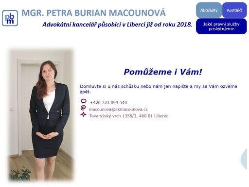 Oficiální název: Mgr. Petra Burian Macounová, advokátní kancelář