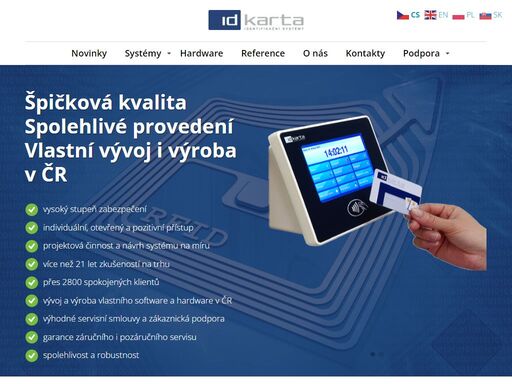 - systémy na čipové karty (kontrola docházky a přístupů, identifikace vozidel a předmětů)
