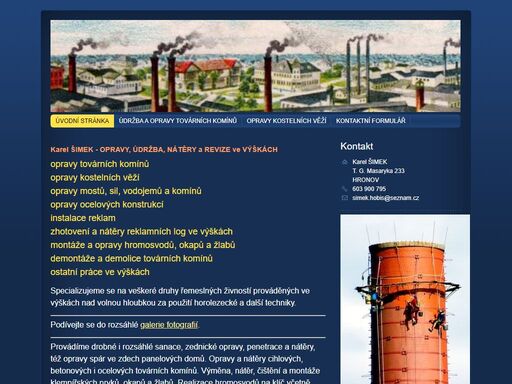 - nátěry (věže, střechy, zdiva, tovární komíny, mosty, vodojemy, ...)