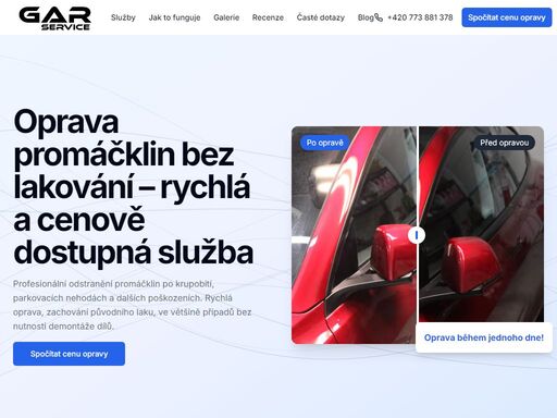 - odstranění promáčklin po krupobití, parkovacích nehodách a dalších poškozeních (rychlé opravy, zachování původního laku, ve většině případů bez nutnosti demontáže dílů)