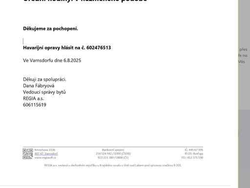REGIA a.s. - Kmochova 2136, Varnsdorf
