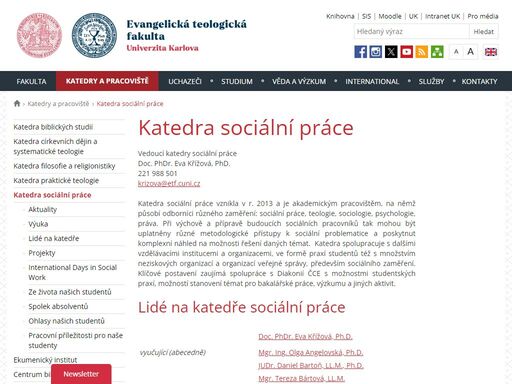 Univerzita Karlova - Katedra sociální práce